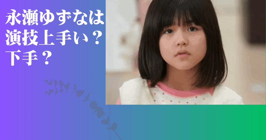 子役として活躍をしている永瀬ゆずな(ながせ ゆずな)さん。 永瀬ゆずなさんの演技は上手いのでしょうか? それとも演技は下手? 永瀬ゆずなさんの出演作品ごとの演技力の...
